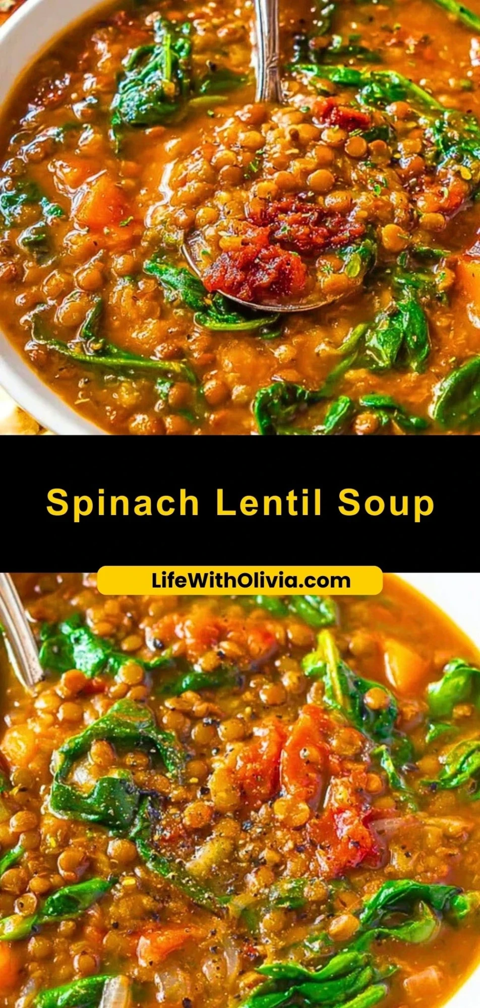 Keywords: lentil soup, vegan soup, spinach lentil, hearty dinner