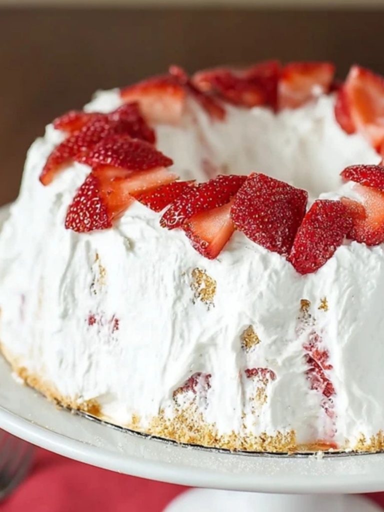 Strawberry Angel Cake is a dreamy no-bake dessert made with layers of fluffy angel food cake, whipped cream cheese filling, and fresh strawberries. It’s light, refreshing, and perfect for warm weather celebrations.