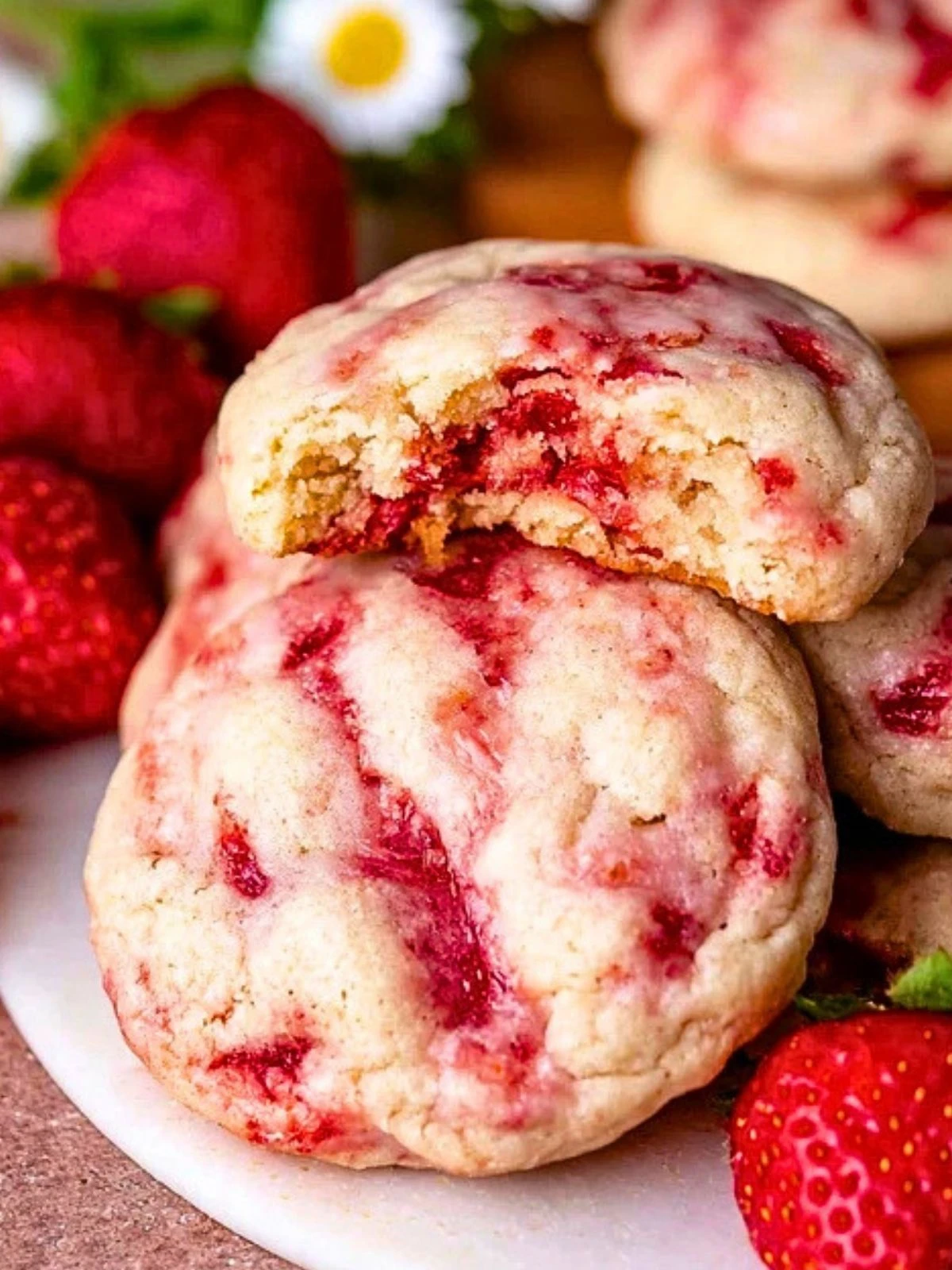 Strawberries bring natural sweetness and a slightly tangy flavor that defines the cookie.