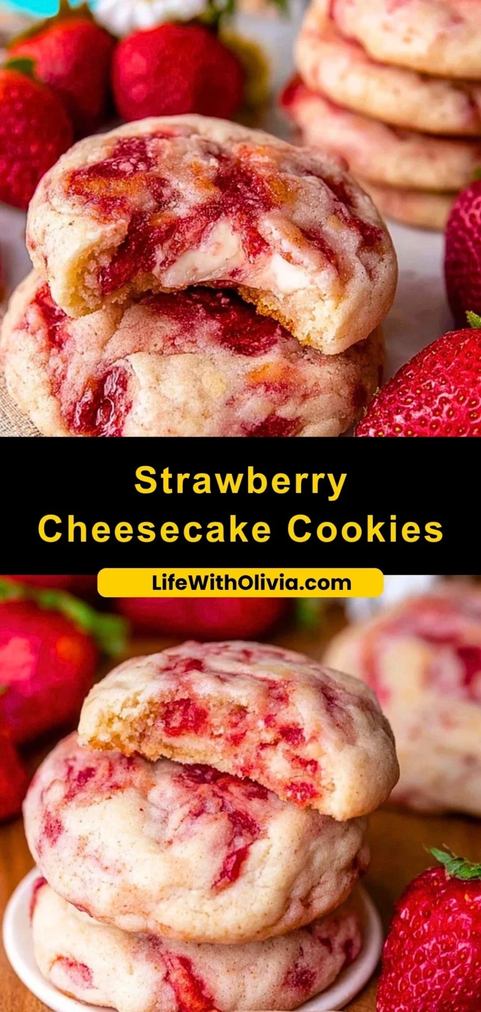 Keywords: strawberry cookies, cheesecake cookies, easy dessert, baking ideas, sweet treats