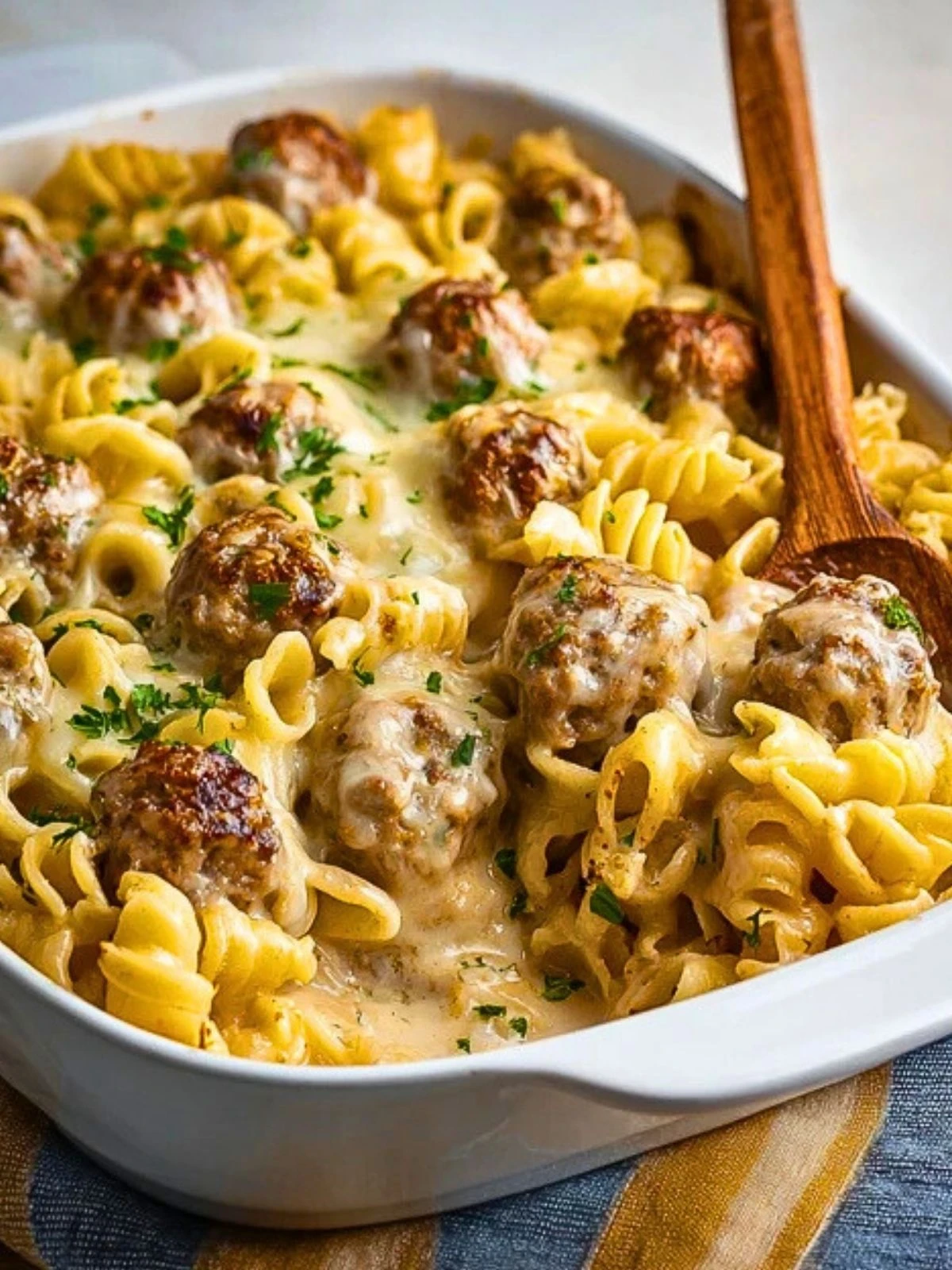 Keywords: Swedish meatball pasta, pasta bake, creamy casserole, easy dinner