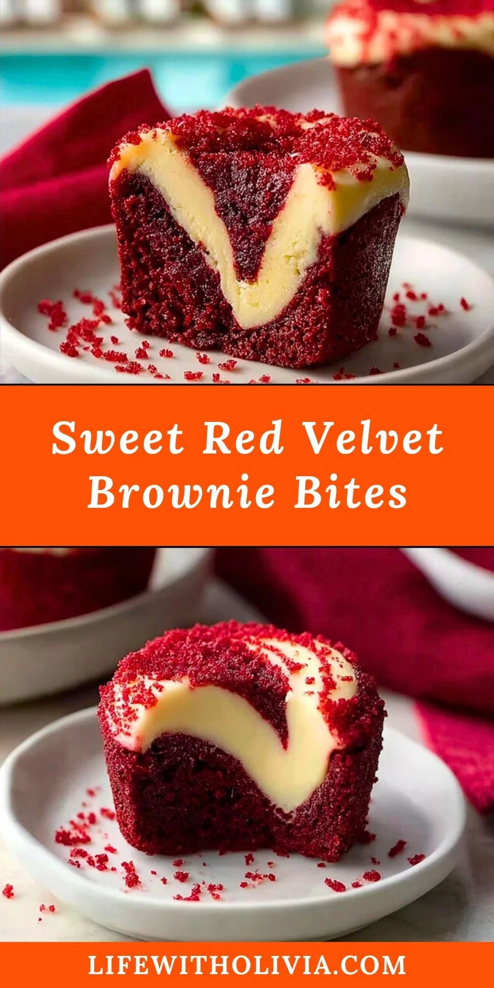 Keywords: red velvet, brownie bites, cheesecake swirl, easy dessert