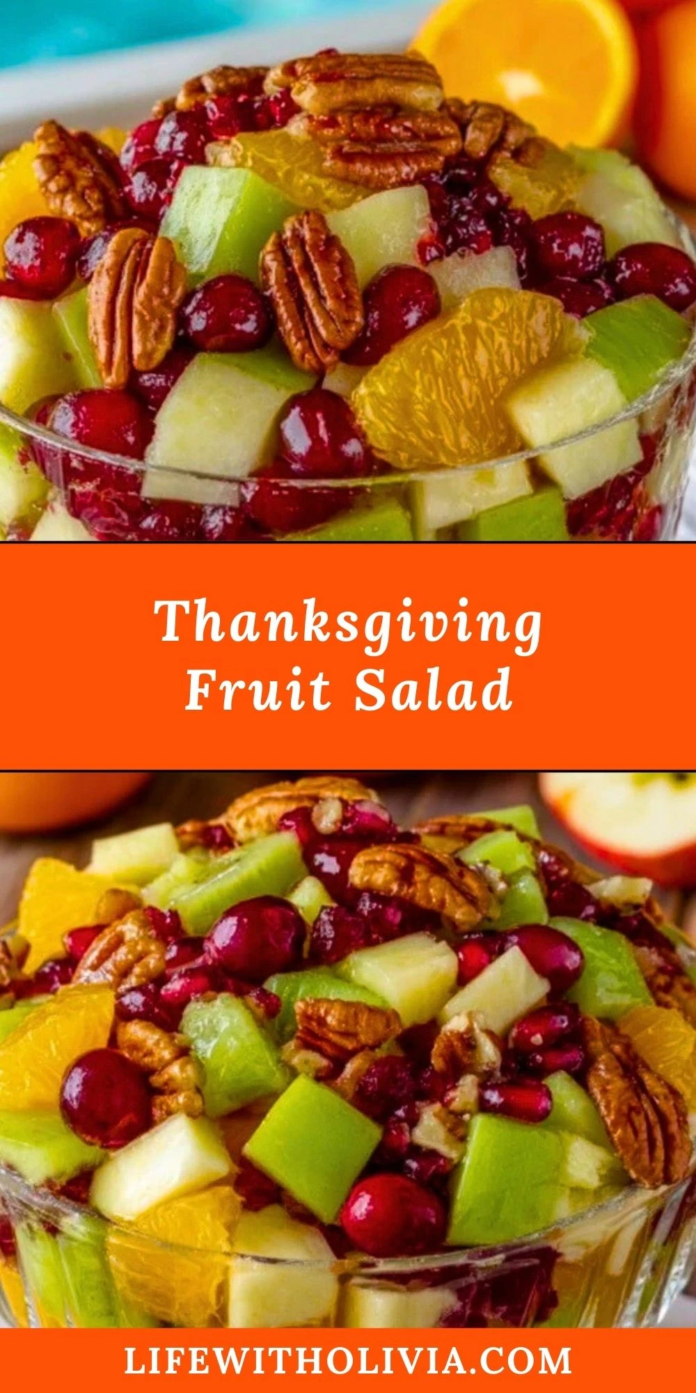 Serve this fruit salad chilled in a glass bowl or individual dessert cups to showcase its vibrant colors. It makes a fantastic addition to the Thanksgiving table as a light side or sweet alternative to heavier desserts.