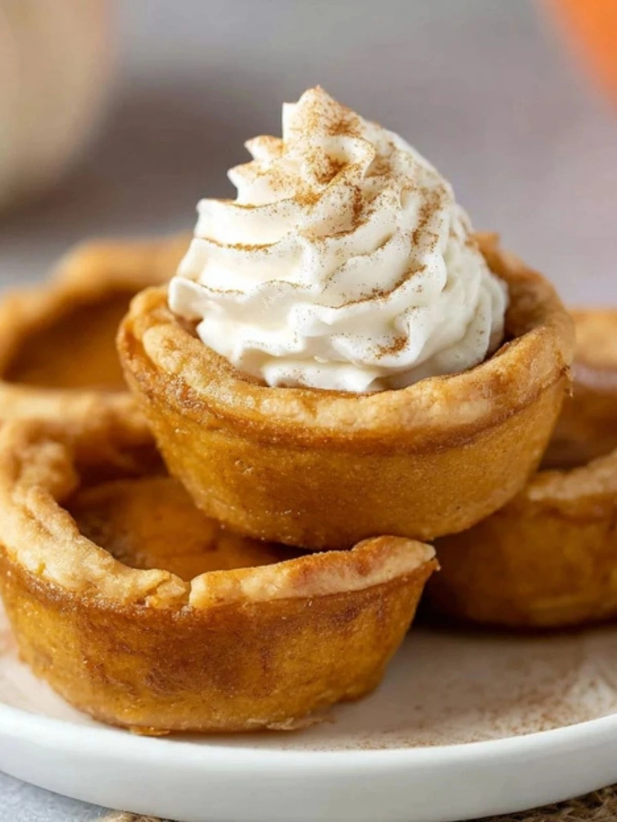 These mini pumpkin pies are best served slightly chilled or at room temperature with a generous swirl of whipped cream and a dusting of cinnamon. They’re ideal for dessert tables, lunchboxes, or a cozy fall brunch. Want to elevate them even more? Serve with a drizzle of caramel or a sprinkle of crushed pecans.