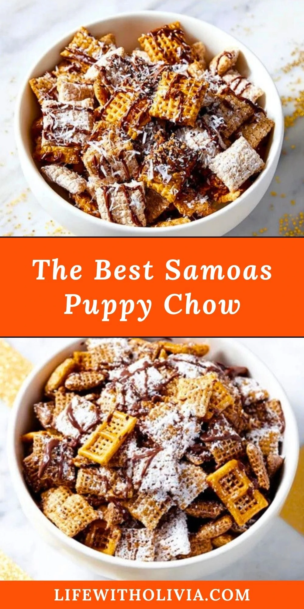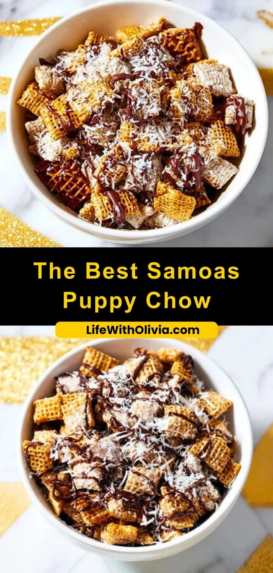 Craving a no-bake treat that takes your favorite Girl Scout cookie and turns it into an irresistible snack mix? The Best Samoas Puppy Chow is your answer. This sweet, crunchy, and chocolatey snack is everything you love about Samoas cookies—rich caramel, coconut flakes, and smooth chocolate—coated on crisp cereal for the ultimate handheld delight.
