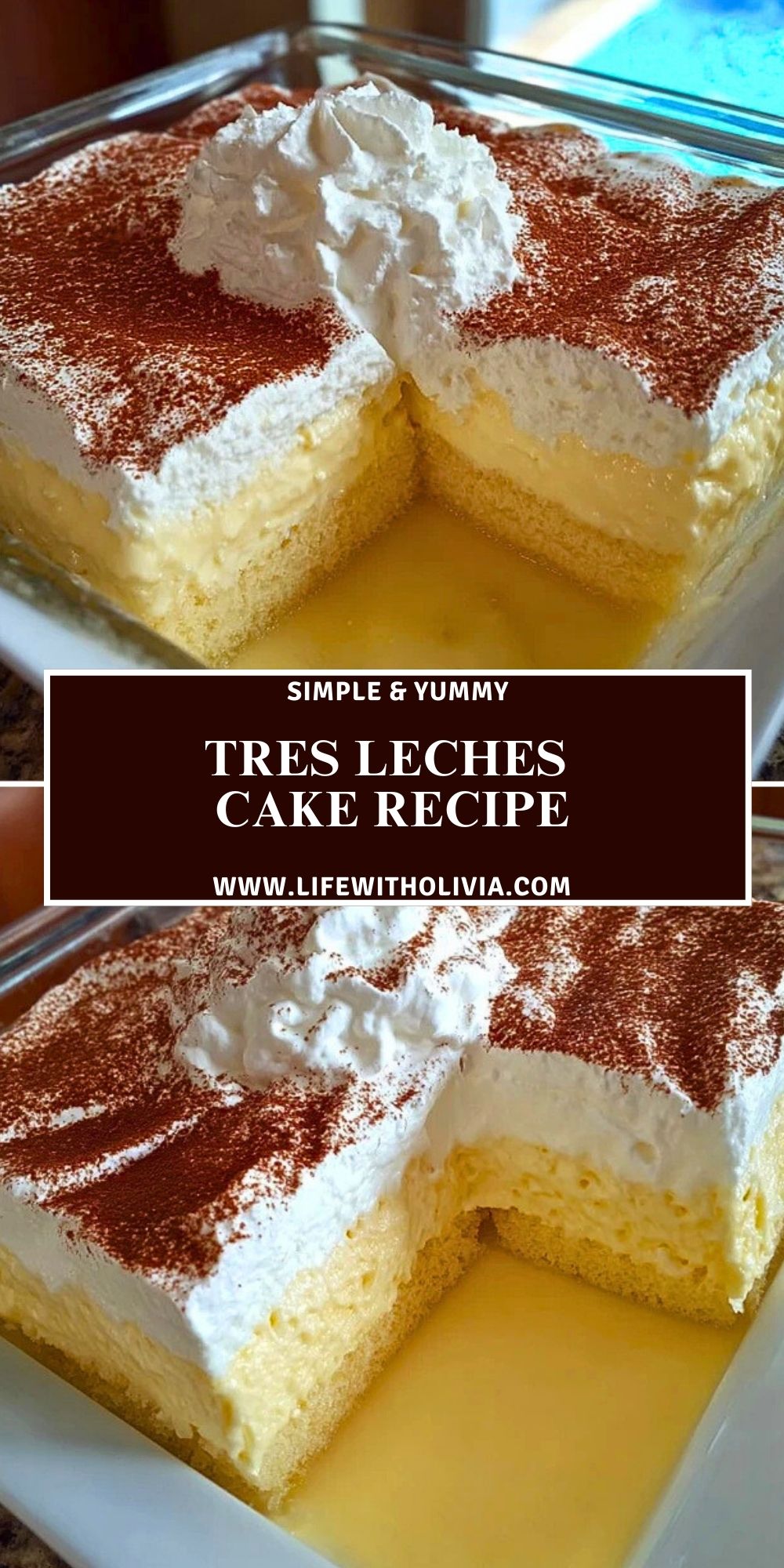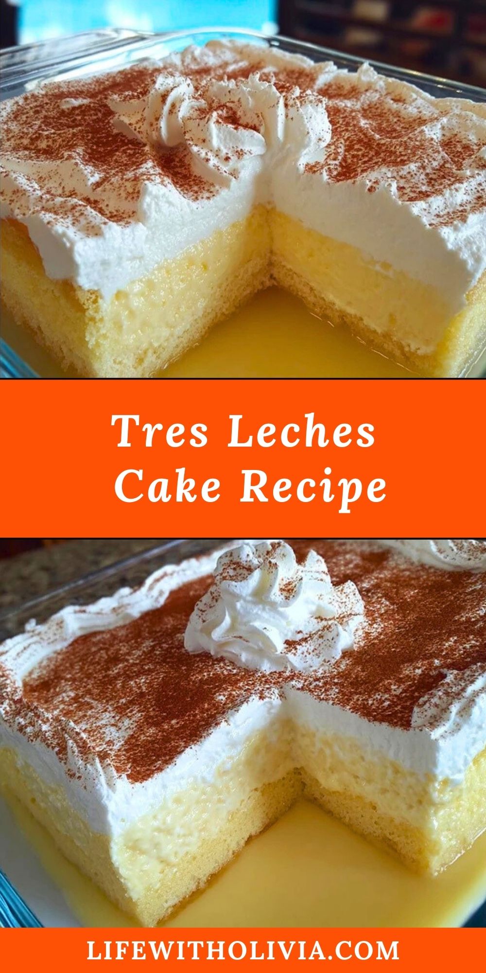 Tres Leches Cake is a tender sponge cake soaked in a rich blend of three milks—evaporated milk, sweetened condensed milk, and heavy cream. Topped with whipped cream and a sprinkle of cinnamon, it’s a creamy, dreamy dessert perfect for any occasion.