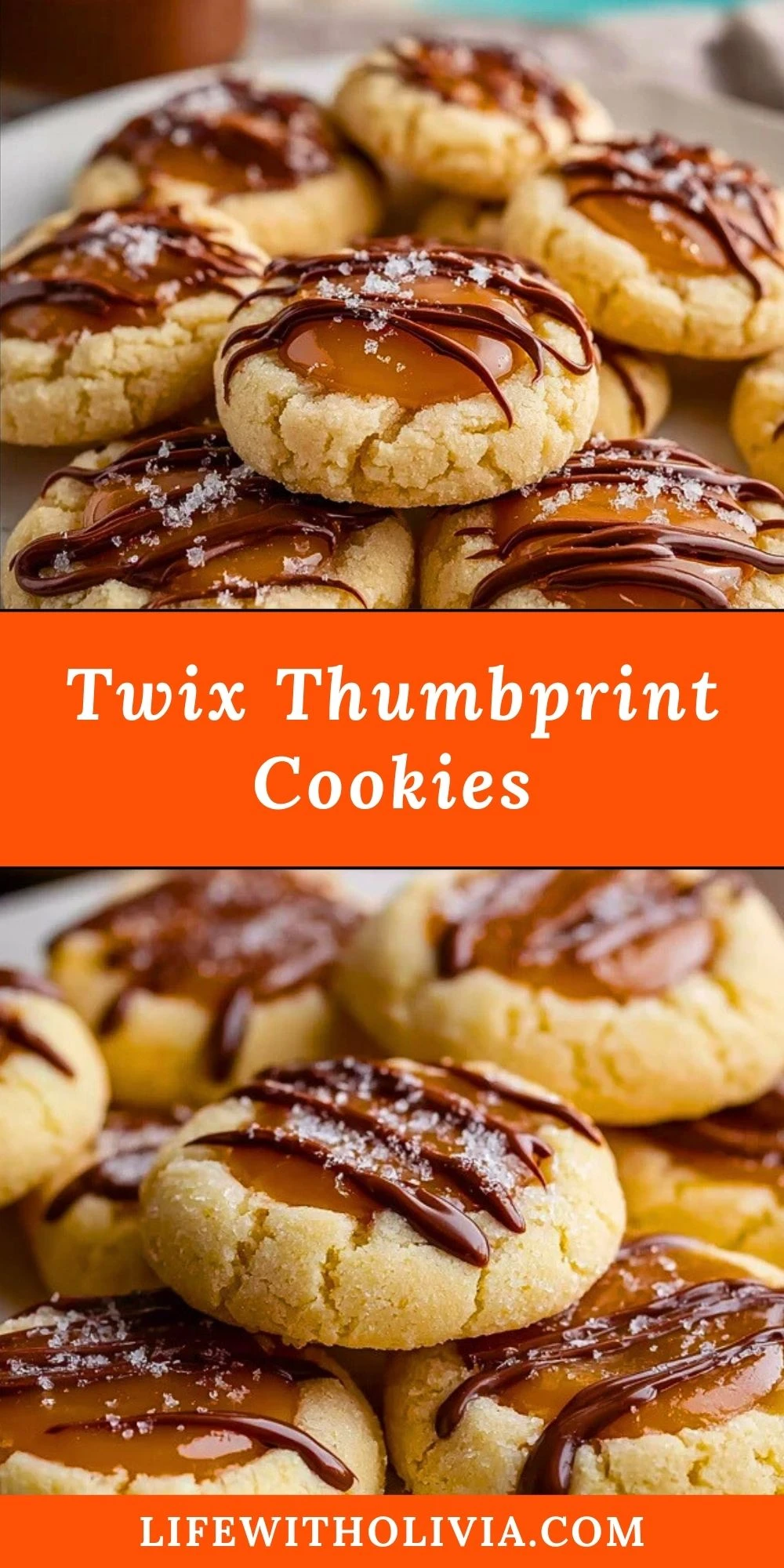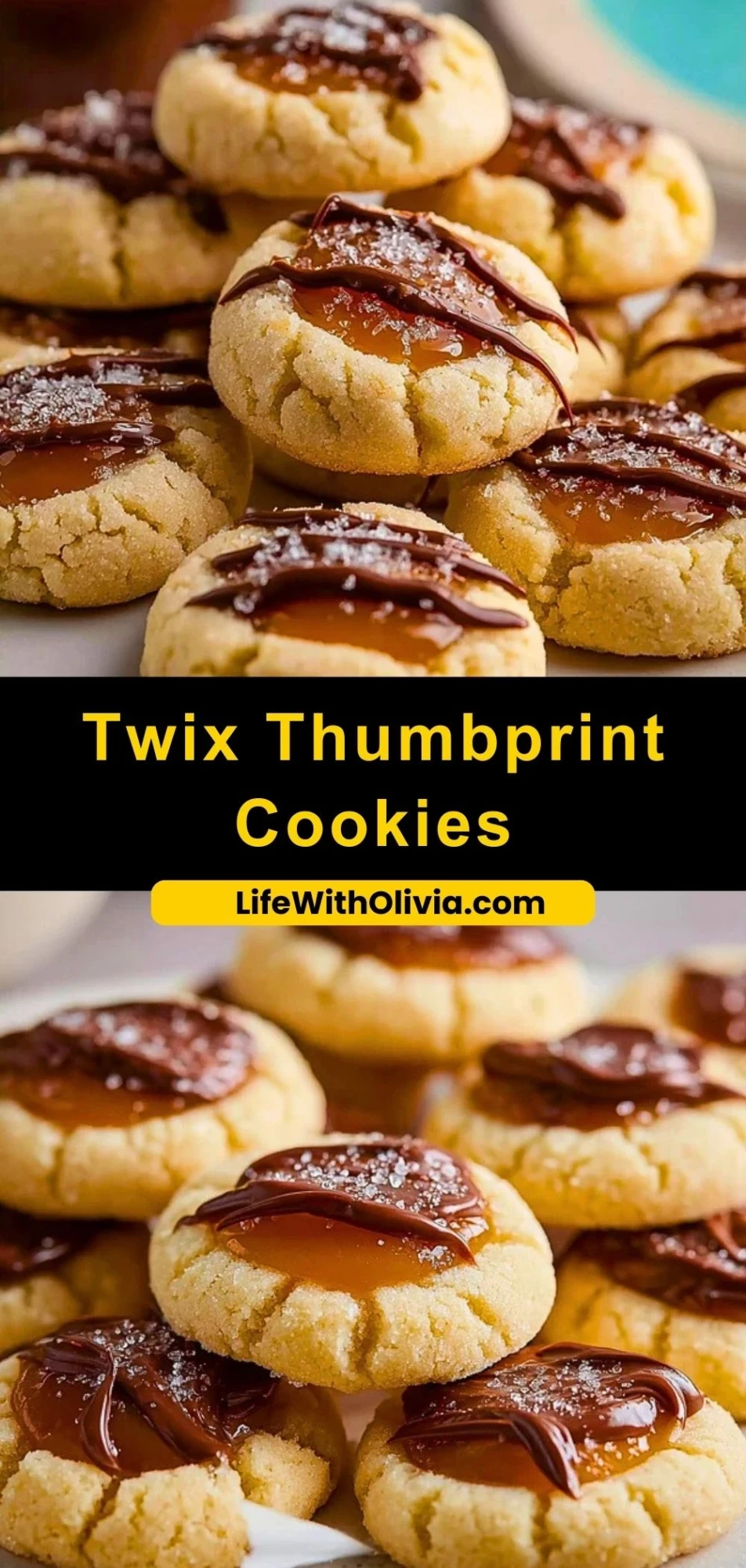 These Twix Thumbprint Cookies are everything you love about the classic candy bar—packaged into a buttery, soft-baked cookie with a gooey caramel center and a drizzle of rich chocolate. Each bite offers the perfect balance of sweetness and texture: a crisp edge, a soft center, and a luscious filling that melts on your tongue.