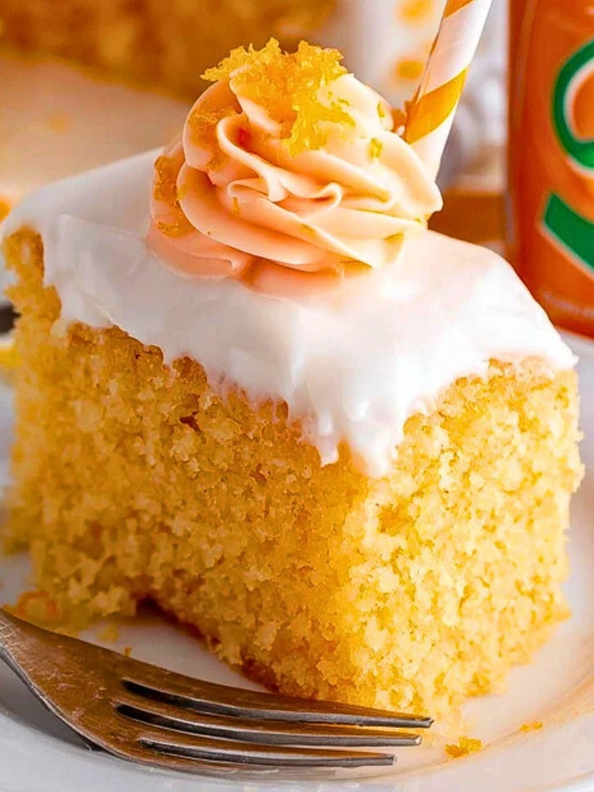 What makes this cake even more special is how simple it is to make. With minimal ingredients and no mixer required, it’s a great recipe for beginners or busy bakers. The orange soda infuses the crumb with flavor, while a glossy glaze and orange-tinted whipped topping give it a show-stopping finish.