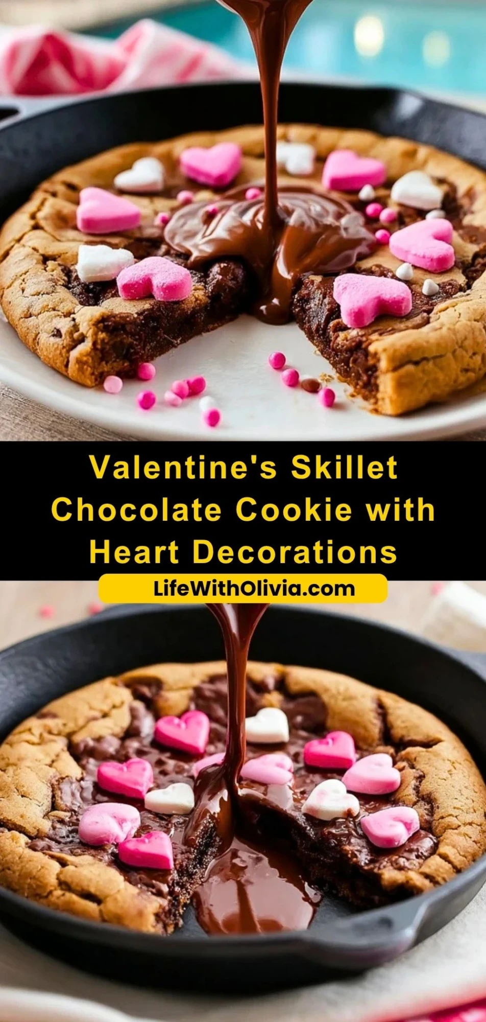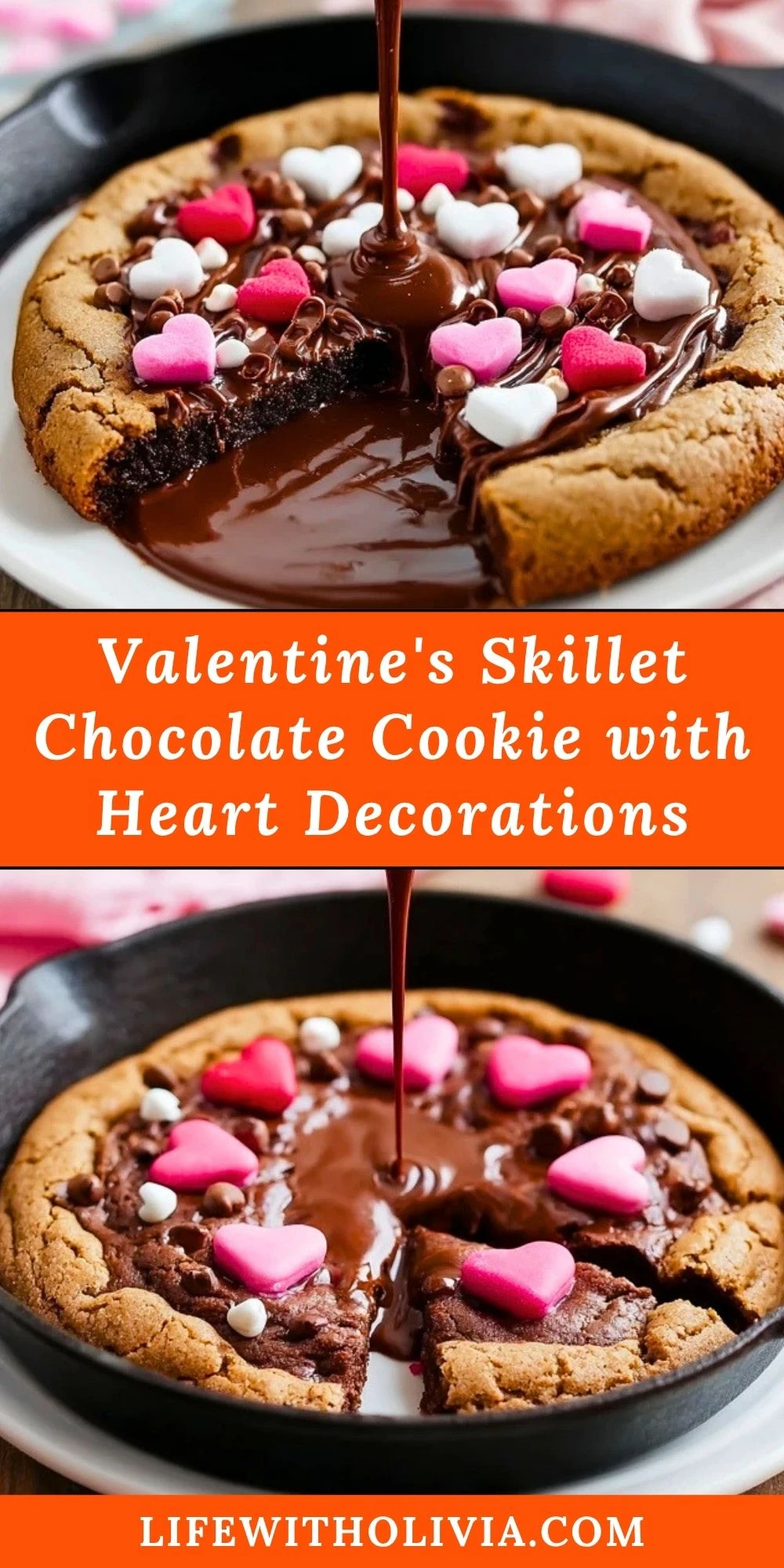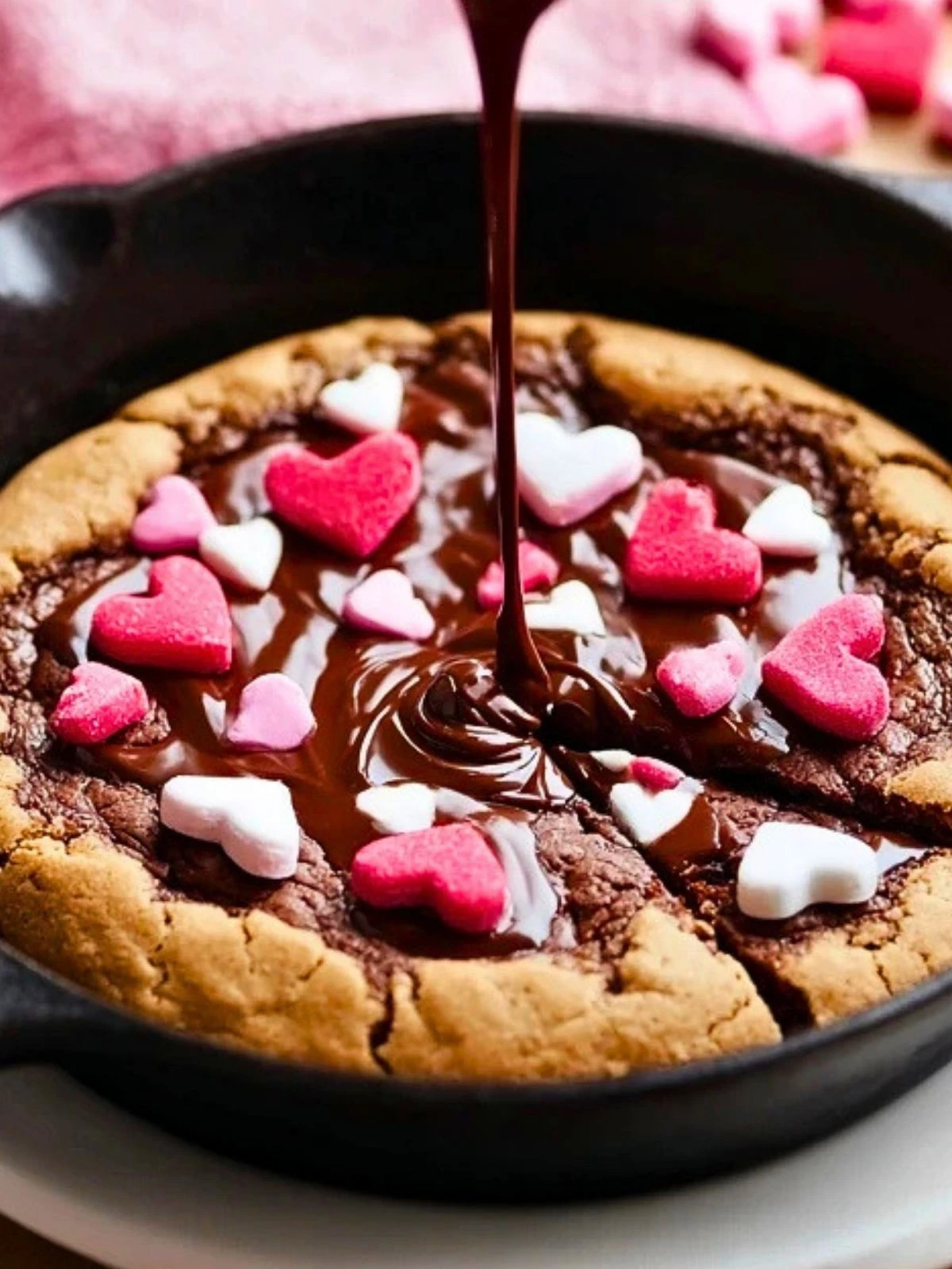 Valentine’s Skillet Chocolate Cookie with Heart Decorations