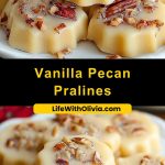 These Vanilla Pecan Pralines are smooth, creamy, and rich with buttery sweetness and toasted pecans. A classic Southern candy that melts in your mouth with each bite, they’re the perfect treat for holiday gifts, celebrations, or just a sweet indulgence at home.