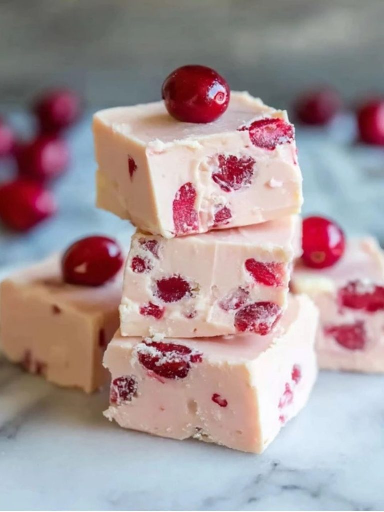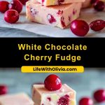 Keywords: white chocolate, cherry, fudge, holiday treat, no bake