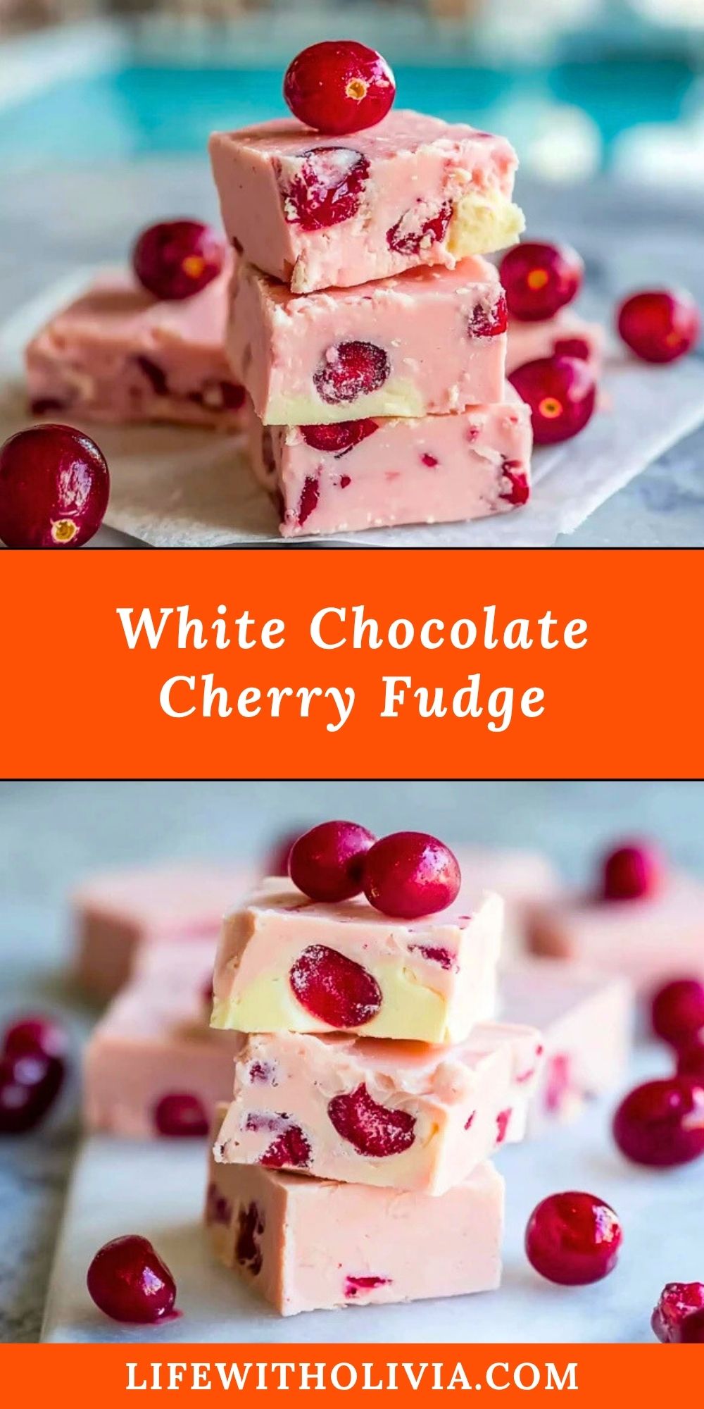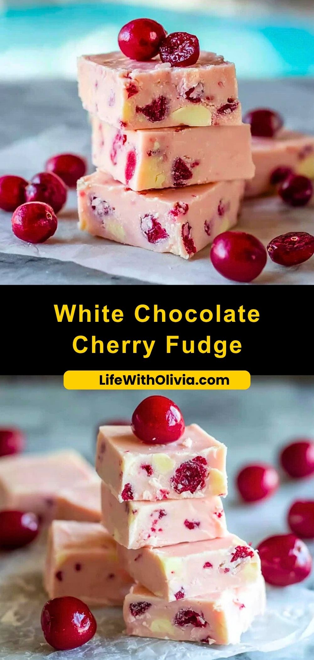 White Chocolate Cherry Fudge is a showstopper on any dessert table. Serve it chilled, straight from the fridge, for the cleanest slices and best texture. Pair it with coffee or hot chocolate for a cozy after-dinner indulgence.